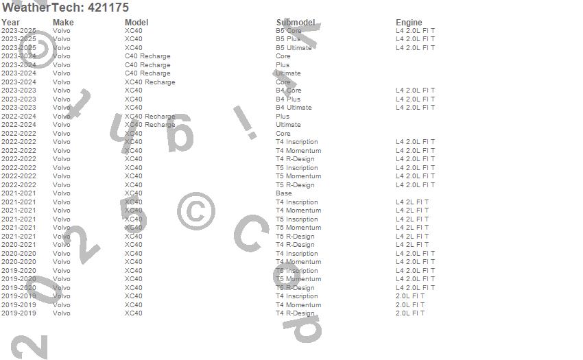 Below is an abbreviated list of applications for the Cargo Liner.C40 Recharge, EX40, XC40, XC40 Recharge, Volvo, 2026, 2025, 2024, 2023, 2022, 2021, 2020, 2019