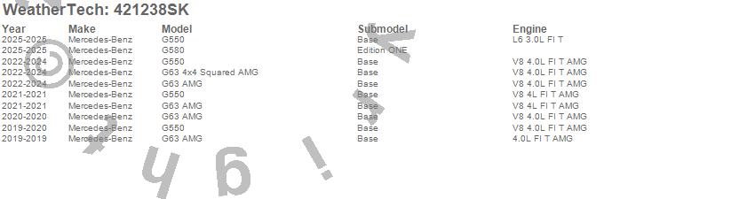 Below is an abbreviated list of applications for the Cargo Liner w/Bumper Protector.G550, G580, G63 4x4 Squared AMG, G63 AMG, Mercedes-Benz, 2025, 2024, 2023, 2022, 2021, 2020, 2019