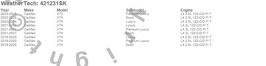 Below is an abbreviated list of applications for the Cargo Liner w/Bumper Protector.XT4, Cadillac, 2025, 2024, 2023, 2022, 2021, 2020, 2019