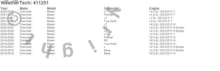 Below is an abbreviated list of applications for the Cargo Liner.Blazer, Chevrolet, 2026, 2025, 2024, 2023, 2022, 2021, 2020, 2019