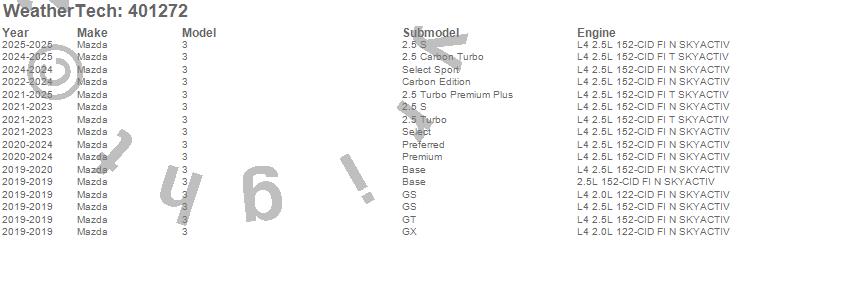 Below is an abbreviated list of applications for the Cargo Liner.3, Mazda, 2025, 2024, 2023, 2022, 2021, 2020, 2019