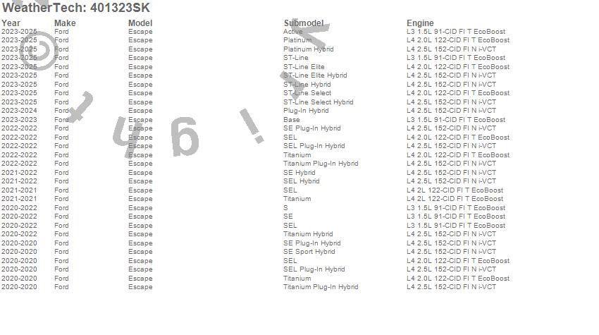 Below is an abbreviated list of applications for the Cargo Liner w/Bumper Protector.Escape, Ford, 2026, 2025, 2024, 2023, 2022, 2021, 2020