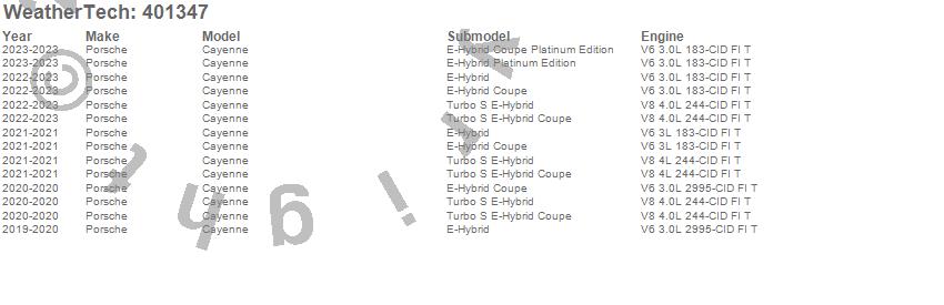 Below is an abbreviated list of applications for the Cargo Liner.Cayenne, Porsche, 2023, 2022, 2021, 2020, 2019