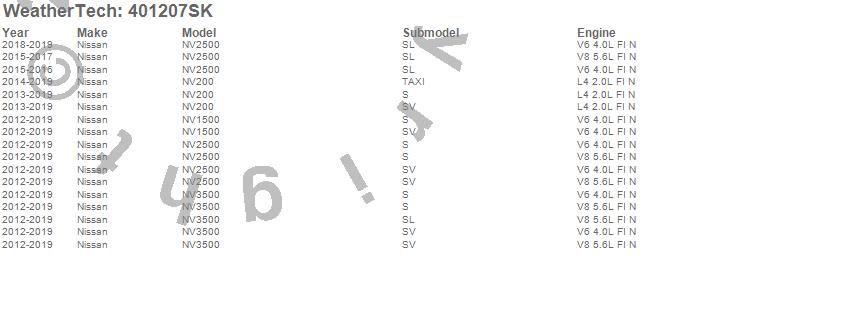 Below is an abbreviated list of applications for the Cargo Liner w/Bumper Protector.NV1500, NV200, NV2500, NV3500, Nissan, 2019, 2018, 2017, 2016, 2015, 2014, 2013, 2012