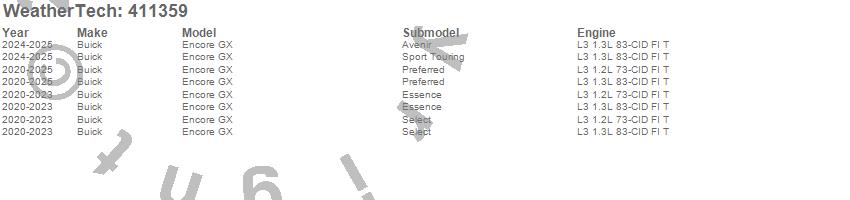 Below is an abbreviated list of applications for the Cargo Liner.Encore GX, Buick, 2026, 2025, 2024, 2023, 2022, 2021, 2020