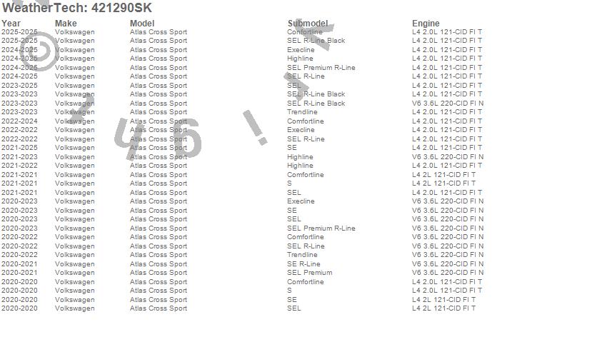 Below is an abbreviated list of applications for the Cargo Liner w/Bumper Protector.Atlas Cross Sport, Volkswagen, 2026, 2025, 2024, 2023, 2022, 2021, 2020