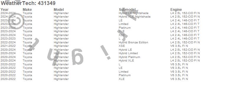 Below is an abbreviated list of applications for the Cargo Liner.Highlander, Toyota, 2025, 2024, 2023, 2022, 2021, 2020