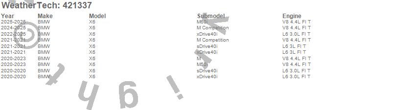 Below is an abbreviated list of applications for the Cargo Liner.X6, BMW, 2025, 2024, 2023, 2022, 2021, 2020