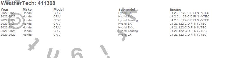 Below is an abbreviated list of applications for the Cargo Liner.CR-V, Honda, 2022, 2021, 2020