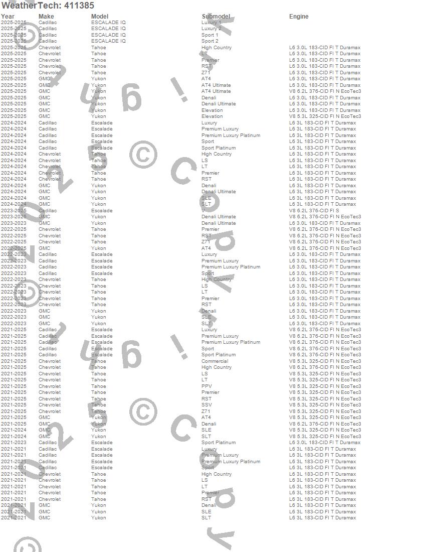 Below is an abbreviated list of applications for the Cargo Liner.Escalade, ESCALADE IQ, ESCALADE IQL, Tahoe, Yukon, Cadillac, Chevrolet, GMC, 2026, 2025, 2024, 2023, 2022, 2021