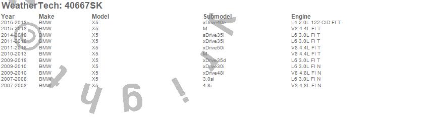 Below is an abbreviated list of applications for the Cargo Liner w/Bumper Protector.X5, BMW, 2018, 2017, 2016, 2015, 2014, 2013, 2012, 2011, 2010, 2009, 2008, 2007