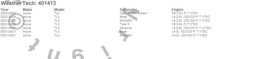 Below is an abbreviated list of applications for the Cargo Liner.TLX, Acura, 2025, 2024, 2023, 2022, 2021