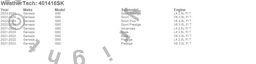 Below is an abbreviated list of applications for the Cargo Liner w/Bumper Protector.G80, Genesis, 2024, 2023, 2022, 2021