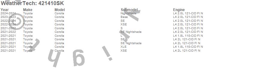 Below is an abbreviated list of applications for the Cargo Liner w/Bumper Protector.Corolla, Toyota, 2024, 2023, 2022, 2021