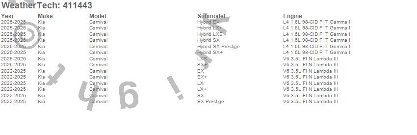 Below is an abbreviated list of applications for the Cargo Liner.Carnival, Kia, 2026, 2025, 2024, 2023, 2022