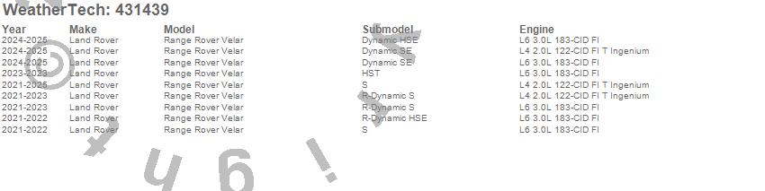 Below is an abbreviated list of applications for the Cargo Liner.Range Rover Velar, Land Rover, 2026, 2025, 2024, 2023, 2022, 2021