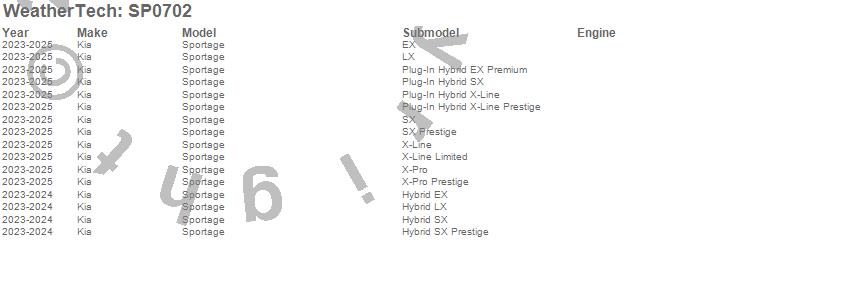 Below is an abbreviated list of applications for the Scratch Protection Film.Sportage, Kia, 2026, 2025, 2024, 2023