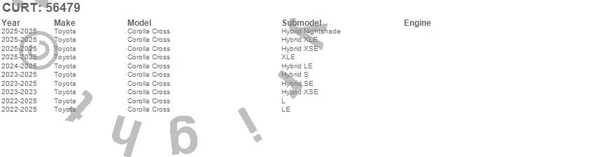 Below is an abbreviated list of applications for the Custom Wiring Harness.Corolla Cross, Toyota, 2025, 2024, 2023, 2022