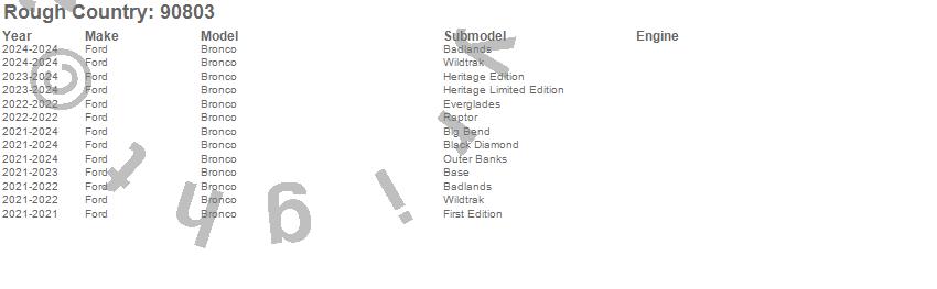 Brand: Rough CountryPart Number: 90803Rocker Panel Guard Type: Heavy Duty - For 4 Doors ModelsUPC: 840269903274