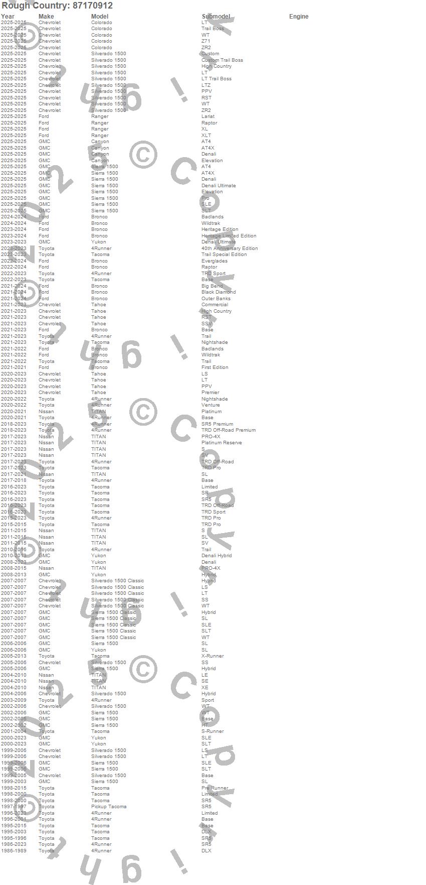 Below is an abbreviated list of applications for the Series 87 Wheel.4Runner, Bronco, Canyon, Colorado, Ranger, Sierra 1500, Sierra 1500 Classic, Silverado 1500, Silverado 1500 Classic, Suburban, Tacoma, Tahoe, TITAN, Yukon, Chevrolet, Ford, GMC, Nissan, Toyota, 2025