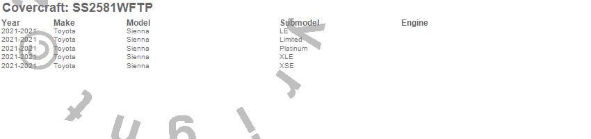 Below is an abbreviated list of applications for the SeatSaver Custom Seat Cover.Sienna, Toyota, 2025, 2024, 2021