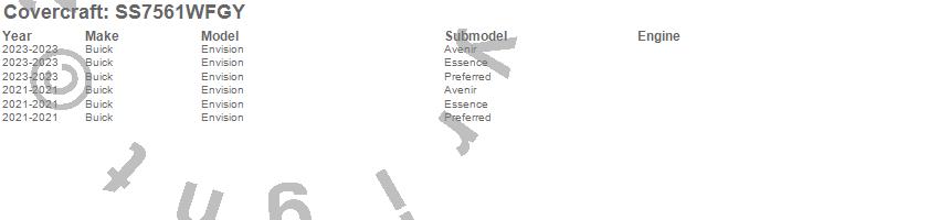 Below is an abbreviated list of applications for the SeatSaver Custom Seat Cover.Envision, Buick, 2025, 2024, 2023, 2021