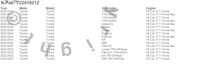 Below is an abbreviated list of applications for the Cab Length Nerf Step RS Bar.Tundra, Toyota, 2025, 2024, 2023, 2022