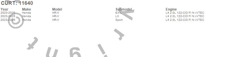 Brand: CURTPart Number: 11640Trailer Hitch Type: Rear - 2000lbs. Gross Trailer Weight - 200lbs. Tongue Weight - Advanced OrderUPC: 612314116409