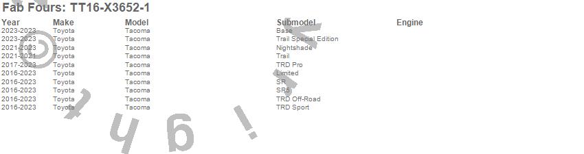 Below is an abbreviated list of applications for the Matrix Front Bumper.Tacoma, Toyota, 2023, 2022, 2021, 2020, 2019, 2018, 2017, 2016