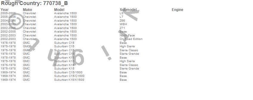 Below is an abbreviated list of applications for the M1 Shock Absorber.Avalanche 1500, C15 Suburban, C15/C1500 Suburban, K15 Suburban, K15/K1500 Suburban, Chevrolet, GMC, 2006, 2005, 2004, 2003, 2002, 1978, 1977, 1976, 1975, 1974, 1973, 1972, 1971