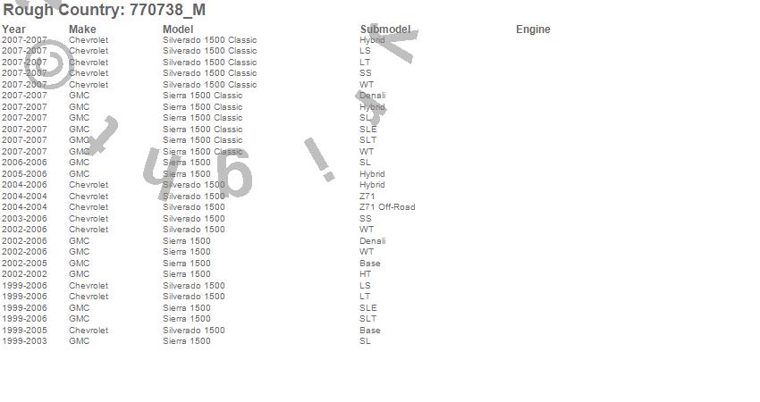 Below is an abbreviated list of applications for the M1 Shock Absorber.Sierra 1500, Sierra 1500 Classic, Silverado 1500, Silverado 1500 Classic, Chevrolet, GMC, 2007, 2006, 2005, 2004, 2003, 2002, 2001, 2000, 1999