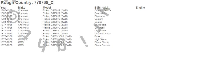Below is an abbreviated list of applications for the M1 Shock Absorber.C30 Pickup, C35/C3500 Pickup, R30 Pickup, Chevrolet, GMC, 1987, 1986, 1985, 1984, 1983, 1982, 1981, 1980, 1979, 1978, 1977