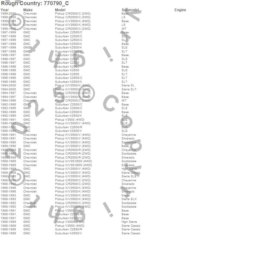 Brand: Rough CountryPart Number: 770790_CShock Absorber Type: Rear - 2.5-6 in. - Monotube - 30.08 in. Extended Length - 17.8 in. Collapse LengthUPC: 840269908316
