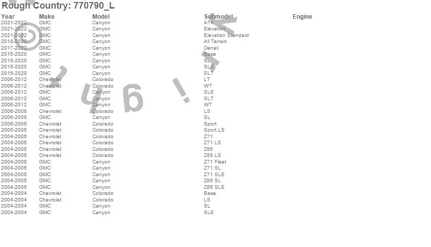 Brand: Rough CountryPart Number: 770790_LShock Absorber Type: Rear - 2.5-6 in. - Monotube - 30.08 in. Extended Length - 17.8 in. Collapse LengthUPC: 840269908378