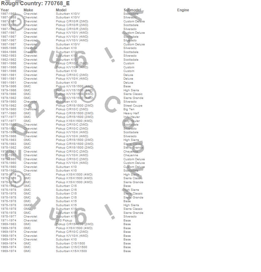 Below is an abbreviated list of applications for the M1 Shock Absorber.C10 Pickup, C15 Suburban, C15/C1500 Suburban, C1500 Pickup, K10 Pickup, K10 Suburban, K15 Suburban, K15/K1500 Pickup, K15/K1500 Suburban, K1500 Pickup, R10 Pickup, V10 Pickup, V10 Suburban, Chevrolet, GMC, 1988, 1987, 1986, 1985, 1984