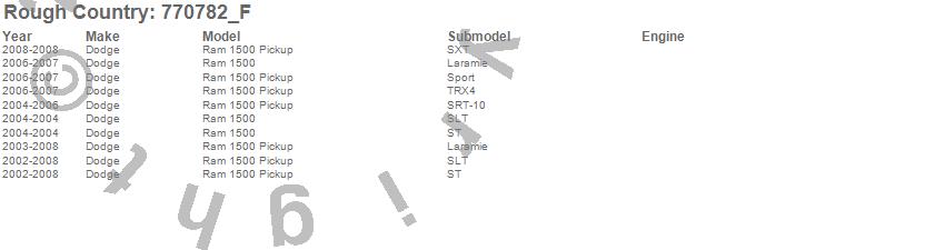 Below is an abbreviated list of applications for the M1 Shock Absorber.Ram 1500, Dodge, 2008, 2007, 2006, 2005, 2004, 2003, 2002