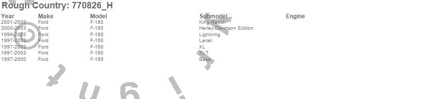 Brand: Rough CountryPart Number: 770826_HShock Absorber Type: Rear - 0-2.5 in. - Monotube - 23.54 in. Extended Length - 14.69 in. Collapse LengthUPC: 840269908552