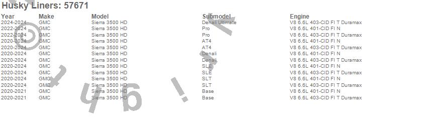 Below is an abbreviated list of applications for the Custom Molded Mud Guards.Sierra 3500 HD, GMC, 2024, 2023, 2022, 2021, 2020