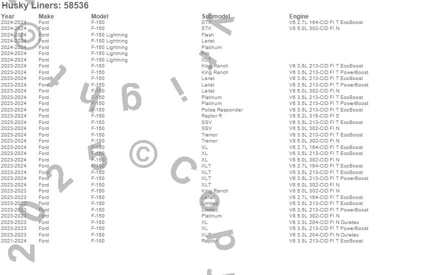 Below is an abbreviated list of applications for the Custom Molded Mud Guards.F-150, F-150 Lightning, Ford, 2024, 2023, 2022, 2021
