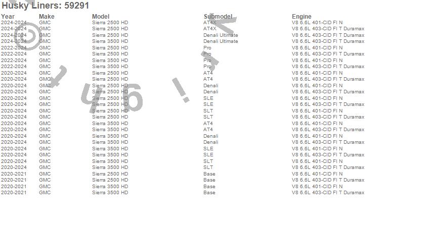 Below is an abbreviated list of applications for the Custom Molded Mud Guards.Sierra 2500 HD, Sierra 3500 HD, GMC, 2026, 2025, 2024, 2023, 2022, 2021, 2020