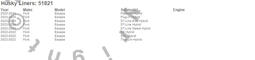 Below is an abbreviated list of applications for the X-act Contour Floor Liner.Escape, Ford, 2024, 2023, 2022