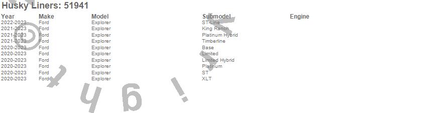 Below is an abbreviated list of applications for the X-act Contour Floor Liner.Explorer, Ford, 2023, 2022, 2021, 2020