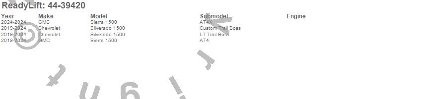 Brand: ReadyLiftPart Number: 44-39420Lift Kit-Suspension Type: 4 in. LiftUPC: 194933302109
