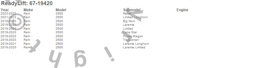 Brand: ReadyLiftPart Number: 67-19420Track Bar Bracket Type: Rear - 4.5 in. LiftUPC: 194933293926