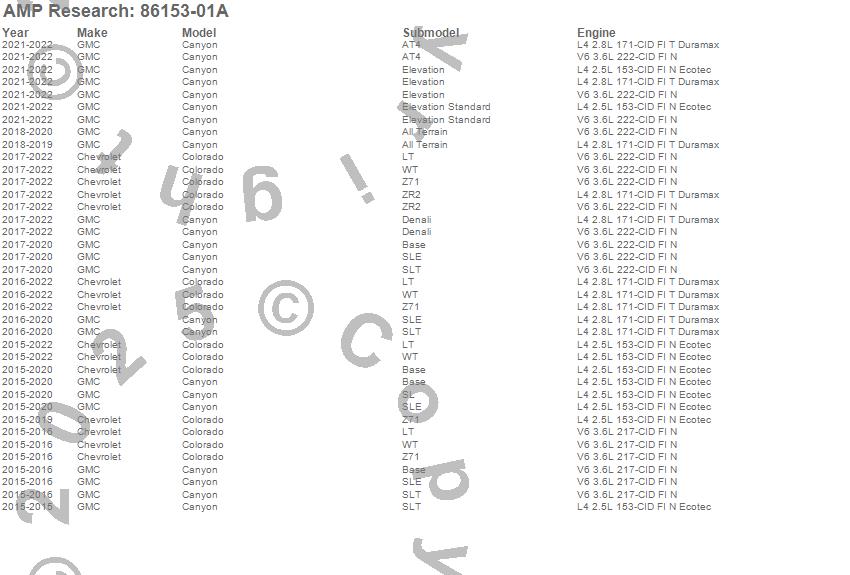 Below is an abbreviated list of applications for the PowerStep Smart Series.Canyon, Colorado, Chevrolet, GMC, 2022, 2021, 2020, 2019, 2018, 2017, 2016, 2015