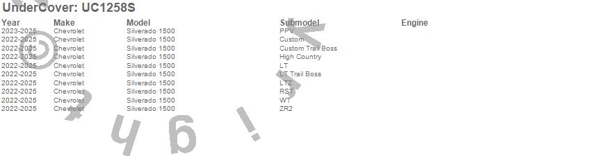 Below is an abbreviated list of applications for the Elite Smooth Tonneau Cover.Silverado 1500, Chevrolet, 2026, 2025, 2024, 2023, 2022