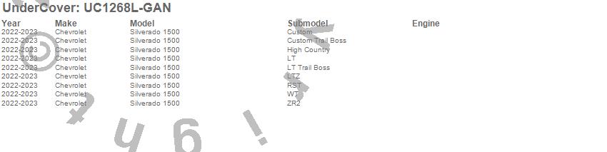 Brand: UnderCoverPart Number: UC1268L-GANTonneau Cover Type: Silver Ice Metallic - w/ Multi Flex TG - Paint Code GANUPC: 840114322700