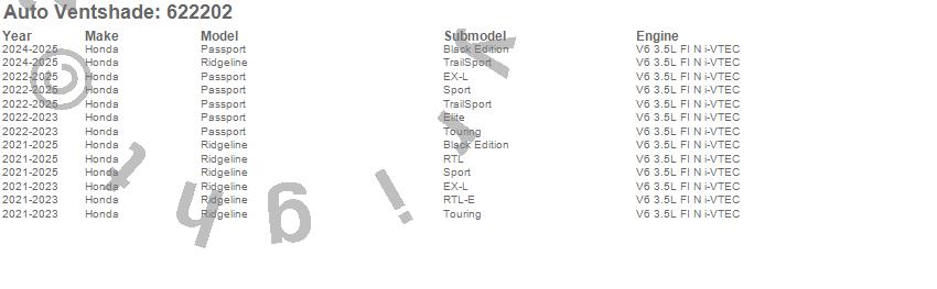 Below is an abbreviated list of applications for the Aeroskin Chrome Hood Protector.Passport, Ridgeline, Honda, 2025, 2024, 2023, 2022, 2021