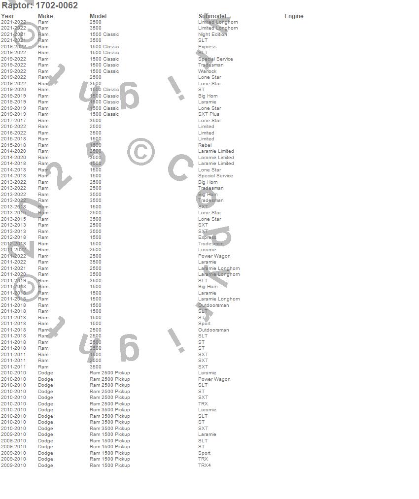 Below is an abbreviated list of applications for the OEM Running Boards.1500, 1500 Classic, 2500, 3500, Ram 1500, Ram 2500, Ram 3500, Dodge, Ram, 2022, 2021, 2020, 2019, 2018, 2017, 2016, 2015, 2014, 2013, 2012