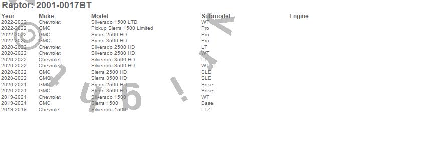 Brand: RaptorPart Number: 2001-0017BTRunning Board Type: 5 in. - Black Textured - Rocker Panel MountUPC: 813443027899